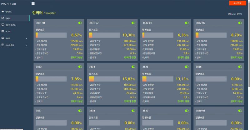 - 인버터별 현재 발전 효율