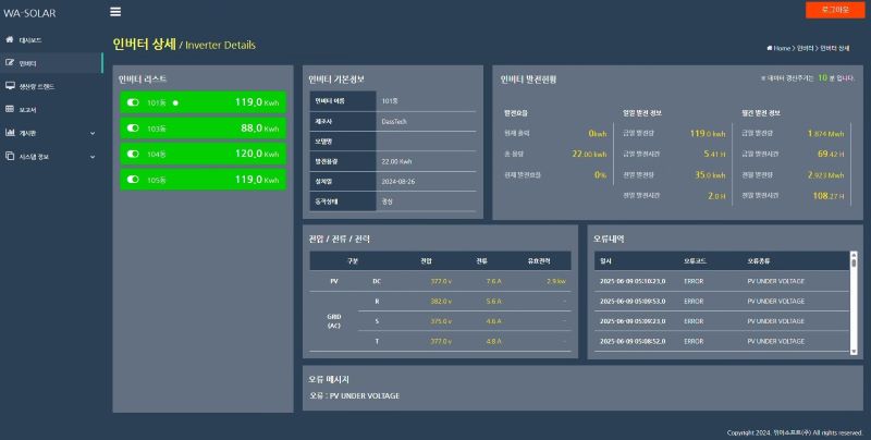 - 인버터 작동상태 및 발전량