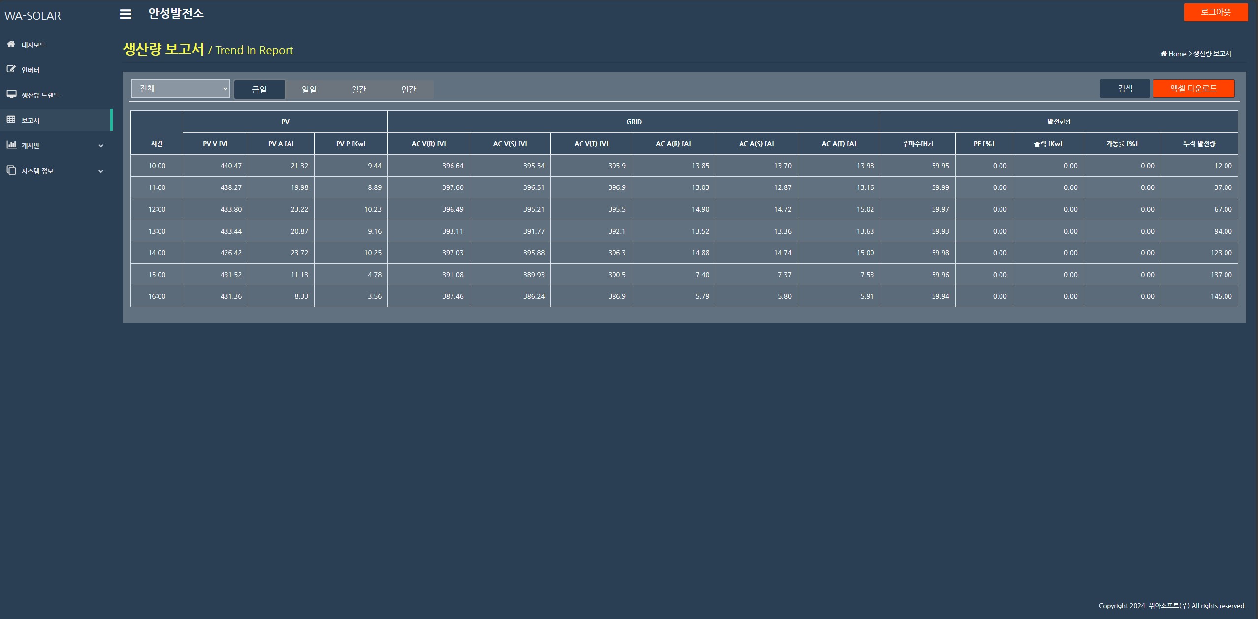 - 발전량 리포트 엑셀 출력 기능